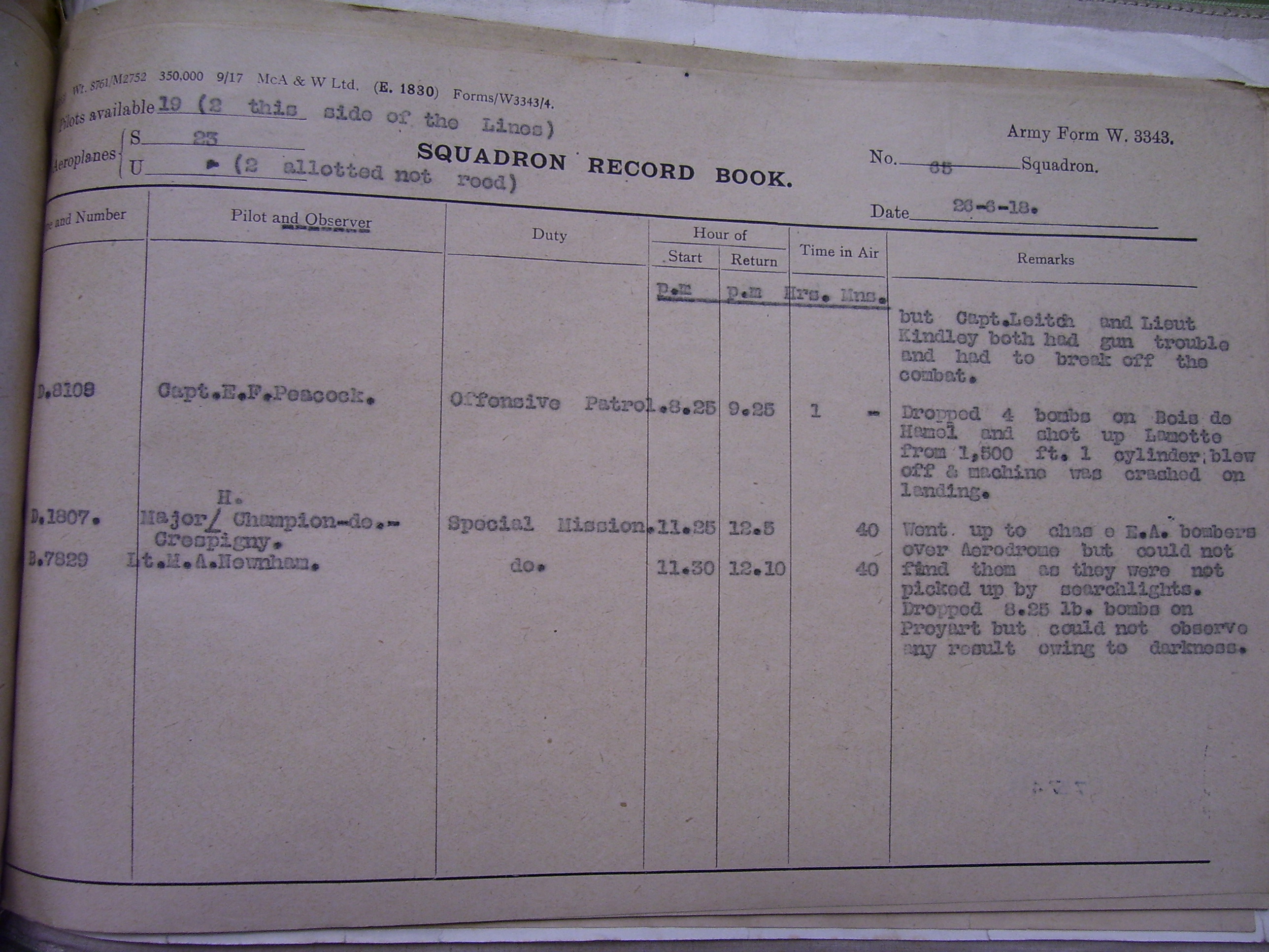 On June 26, 1918 Eaton was part of a five plane formation that left the aerodrome at 7:30pm. At 8:30 they attacked nine enemy planes north of Albert. Lt Eaton was last seen going down under control with smoke coming out of his plane. He was the twenty fifth aircraft shot down by German Ace Fritz Rumey